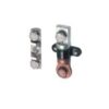 These plates fit under the roof tile and are connected into the lightning protection system. The square plate protrudes from the tiles and provides the interception point.